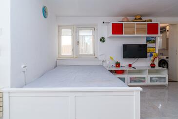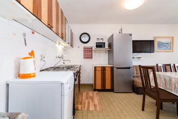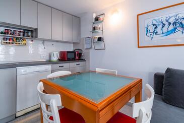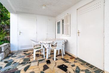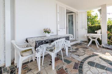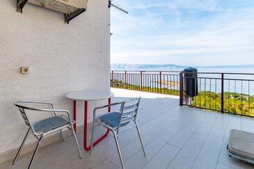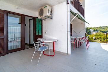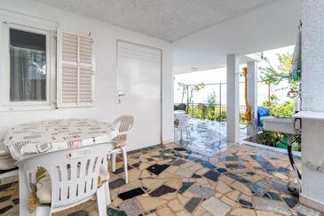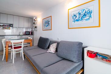 Appartamento può accogliere 6 ospiti. I letti sono disposti nelle camere da letto che sono 2, e nella sala da pranzo, su 50m2. Gli ospiti hanno a disposizione il proprio terrazzo per godere nelle calde serate estive. Dall'appartamento si gode di una vista sul mare. Si può preparare il cibo utilizzando il barbecue comune.