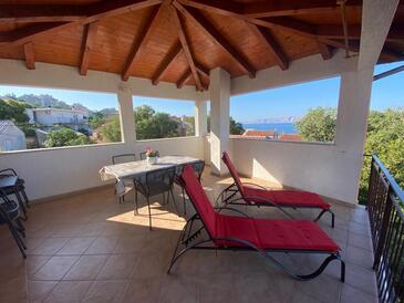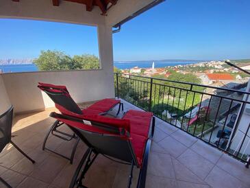 Appartamento può accogliere 5 ospiti. I letti sono disposti nelle camere da letto che sono 2, su 71m2. Gli ospiti hanno a disposizione il proprio terrazzo per godere nelle calde serate estive. Dall'appartamento si gode di una vista sul mare. Si può preparare il cibo utilizzando il barbecue comune.