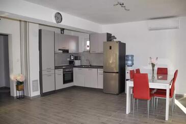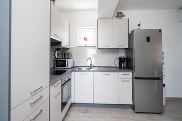 Casa può accogliere 6 ospiti. I letti sono disposti nelle camere da letto che sono 2, e nella camera di soggiorno, su 60m2. Gli ospiti hanno a disposizione il proprio terrazzo per godere nelle calde serate estive. Dalla casa si gode di una vista sul mare. Per il piacere totale e il relax c'è il barbecue privato solo per gli ospiti di quest'alloggio. Durante il soggiorno gli ospiti possono utilizzare la piscina comune. Nell'unità di alloggio si possono portare gli animali domestici con un pagamento supplementare. Arrivati nell'unità d'alloggio i clienti devono pagare un deposito (il prezzo è indicato sul sito).