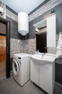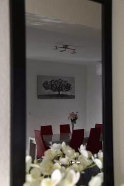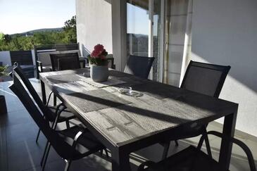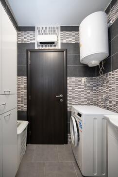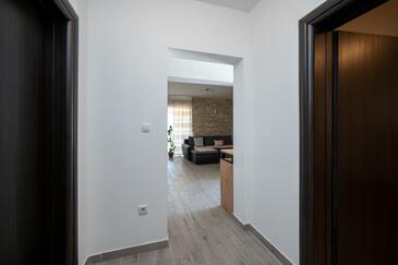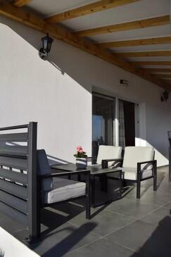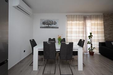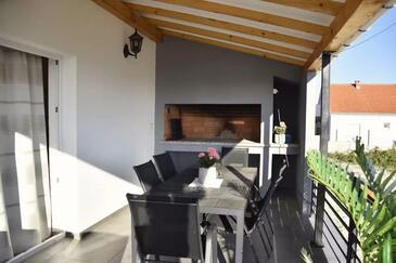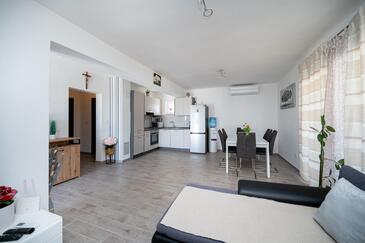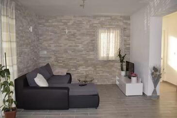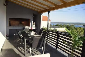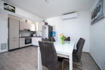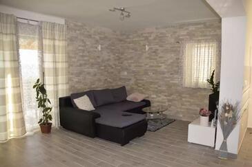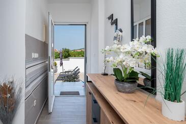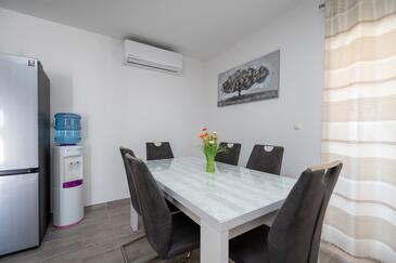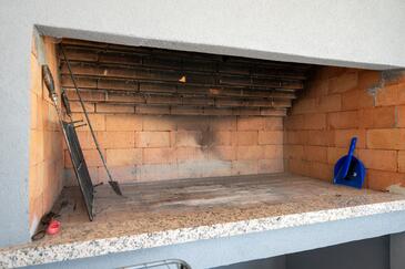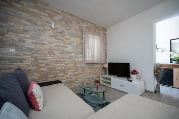 Casa può accogliere 6 ospiti. I letti sono disposti nelle camere da letto che sono 2, e nella camera di soggiorno, su 60m2. Gli ospiti hanno a disposizione il proprio terrazzo per godere nelle calde serate estive. Dalla casa si gode di una vista sul mare. Per il piacere totale e il relax c'è il barbecue privato solo per gli ospiti di quest'alloggio. Durante il soggiorno gli ospiti possono utilizzare la piscina comune. Nell'unità di alloggio si possono portare gli animali domestici con un pagamento supplementare. Arrivati nell'unità d'alloggio i clienti devono pagare un deposito (il prezzo è indicato sul sito).