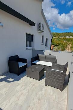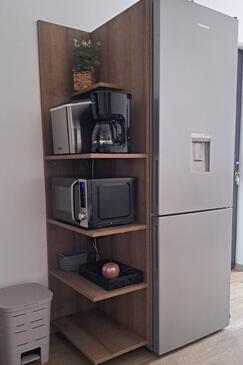 Casa può accogliere 16 ospiti. I letti sono disposti nelle camere da letto che sono 4, e nella camera di soggiorno, su 144m2. Gli ospiti hanno a disposizione il proprio balcone per godere delle calde serate estive. Dalla casa si gode di una vista sul mare. Per il piacere totale e il relax c'è il barbecue privato solo per gli ospiti di quest'alloggio. Durante il soggiorno gli ospiti possono utilizzare la piscina comune. Nell'unità di alloggio si possono portare gli animali domestici con un pagamento supplementare. Le stanze dell'unità d'alloggio non sono connesse in un insieme.