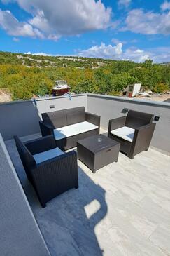 Casa può accogliere 16 ospiti. I letti sono disposti nelle camere da letto che sono 4, e nella camera di soggiorno, su 144m2. Gli ospiti hanno a disposizione il proprio balcone per godere delle calde serate estive. Dalla casa si gode di una vista sul mare. Per il piacere totale e il relax c'è il barbecue privato solo per gli ospiti di quest'alloggio. Durante il soggiorno gli ospiti possono utilizzare la piscina comune. Nell'unità di alloggio si possono portare gli animali domestici con un pagamento supplementare. Le stanze dell'unità d'alloggio non sono connesse in un insieme.