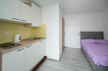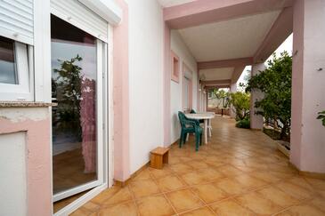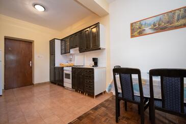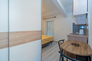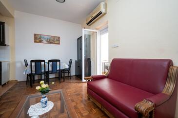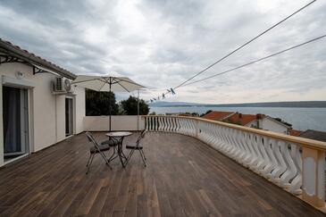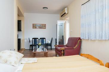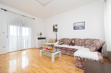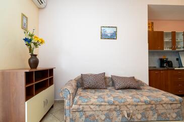 Appartamento può accogliere 5 ospiti. I letti sono disposti nelle camere da letto che sono 2, e nella camera di soggiorno, su 62m2. Gli ospiti hanno a disposizione il proprio balcone per godere delle calde serate estive. Dall'appartamento si gode di una vista sul mare. Si può preparare il cibo utilizzando il barbecue comune.