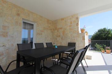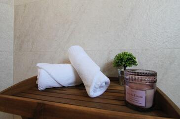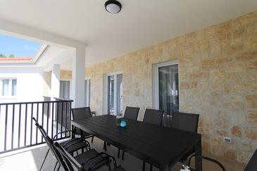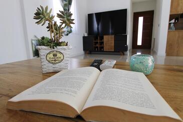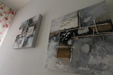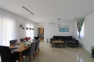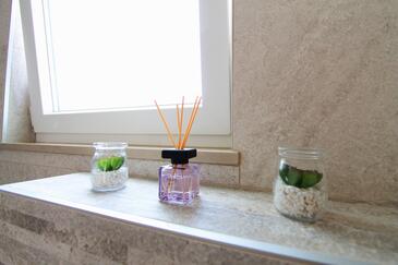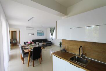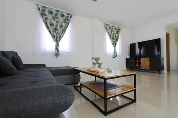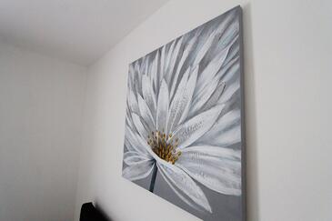 Appartamento può accogliere 6 ospiti. I letti sono disposti nelle camere da letto che sono 2, e nella camera di soggiorno, su 65m2. Gli ospiti hanno a disposizione il proprio terrazzo per godere nelle calde serate estive. Dall'appartamento si gode di una vista sul mare.