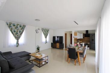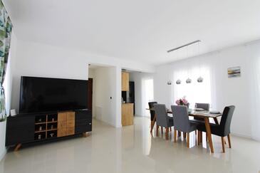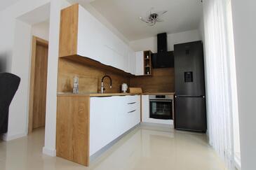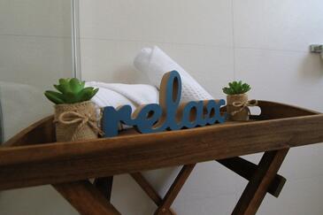 Appartamento può accogliere 6 ospiti. I letti sono disposti nelle camere da letto che sono 2, e nella camera di soggiorno, su 65m2. Gli ospiti hanno a disposizione il proprio terrazzo per godere nelle calde serate estive. Dall'appartamento si gode di una vista sul mare.