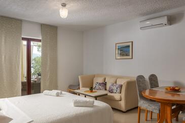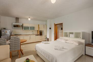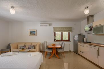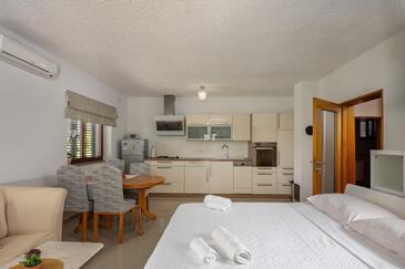Appartamento può accogliere 5 ospiti. I letti sono disposti nelle camere da letto che sono 1, e nella camera di soggiorno, su 45m2. Gli ospiti hanno a disposizione il proprio terrazzo per godere nelle calde serate estive. Dall'appartamento si gode di una vista sul mare. Si può preparare il cibo utilizzando il barbecue comune. Nell'unità di alloggio si possono portare gli animali domestici con un pagamento supplementare.