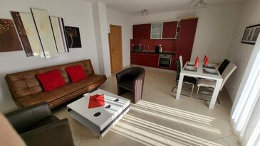 Appartamento può accogliere 3 ospiti. I letti sono disposti nelle camere da letto che sono 1, e nella camera di soggiorno, su 48m2. Gli ospiti hanno a disposizione il proprio balcone per godere delle calde serate estive. Si può preparare il cibo utilizzando il barbecue comune. Nell'unità di alloggio si possono portare gli animali domestici con un pagamento supplementare.