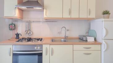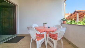 Appartamento può accogliere 4 ospiti. I letti sono disposti nelle camere da letto che sono 2, su 45m2. Gli ospiti hanno a disposizione il proprio terrazzo per godere nelle calde serate estive. Si può preparare il cibo utilizzando il barbecue comune.