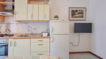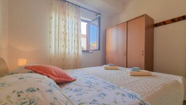 Appartamento può accogliere 4 ospiti. I letti sono disposti nelle camere da letto che sono 2, su 45m2. Gli ospiti hanno a disposizione il proprio terrazzo per godere nelle calde serate estive. Si può preparare il cibo utilizzando il barbecue comune.