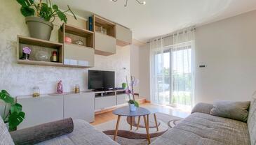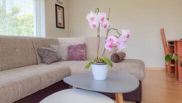 Appartamento può accogliere 4 ospiti. I letti sono disposti nelle camere da letto che sono 2, su 76m2. Gli ospiti hanno a disposizione il proprio terrazzo per godere nelle calde serate estive. Si può preparare il cibo utilizzando il barbecue comune.