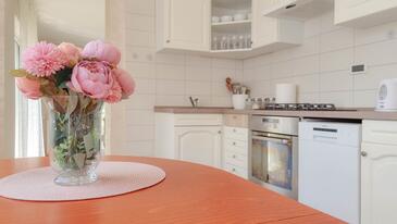 Appartamento può accogliere 4 ospiti. I letti sono disposti nelle camere da letto che sono 2, su 76m2. Gli ospiti hanno a disposizione il proprio terrazzo per godere nelle calde serate estive. Si può preparare il cibo utilizzando il barbecue comune.