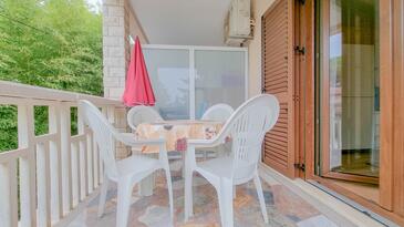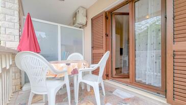 Appartamento può accogliere 5 ospiti. I letti sono disposti nelle camere da letto che sono 2, su 44m2. Gli ospiti hanno a disposizione il proprio terrazzo per godere nelle calde serate estive. Si può preparare il cibo utilizzando il barbecue comune.