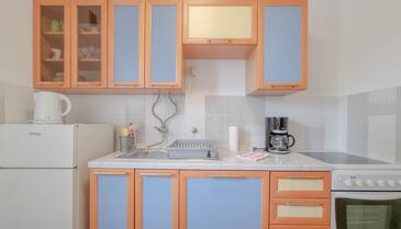 Appartamento può accogliere 5 ospiti. I letti sono disposti nelle camere da letto che sono 2, su 44m2. Gli ospiti hanno a disposizione il proprio terrazzo per godere nelle calde serate estive. Si può preparare il cibo utilizzando il barbecue comune.