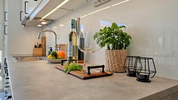 Appartamento può accogliere 4 ospiti. I letti sono disposti nelle camere da letto che sono 1, e nella camera di soggiorno, su 40m2. Gli ospiti hanno a disposizione il proprio terrazzo per godere nelle calde serate estive. Per il piacere totale e il relax c'è il barbecue privato solo per gli ospiti di quest'alloggio. Durante il soggiorno gli ospiti possono utilizzare la piscina comune. Nell'unità di alloggio si possono portare gli animali domestici con un pagamento supplementare.