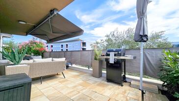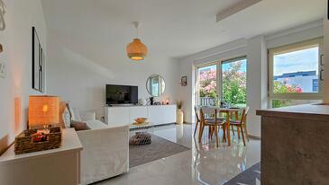 Appartamento può accogliere 4 ospiti. I letti sono disposti nelle camere da letto che sono 1, e nella camera di soggiorno, su 40m2. Gli ospiti hanno a disposizione il proprio terrazzo per godere nelle calde serate estive. Per il piacere totale e il relax c'è il barbecue privato solo per gli ospiti di quest'alloggio. Durante il soggiorno gli ospiti possono utilizzare la piscina comune. Nell'unità di alloggio si possono portare gli animali domestici con un pagamento supplementare.