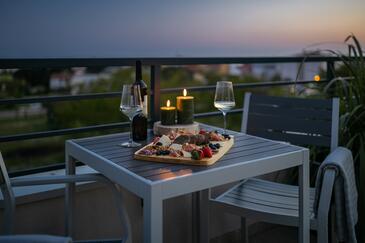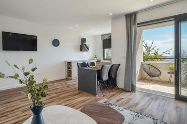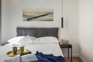 Appartamento può accogliere 4 ospiti. I letti sono disposti nelle camere da letto che sono 2, su 58m2. Gli ospiti hanno a disposizione il proprio balcone per godere delle calde serate estive. Dall'appartamento si gode di una vista sul mare.