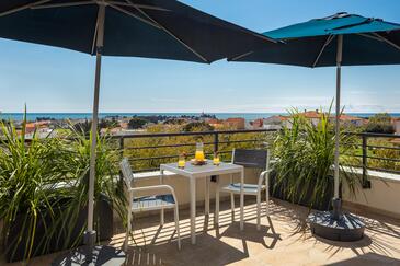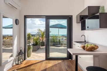 Appartamento può accogliere 4 ospiti. I letti sono disposti nelle camere da letto che sono 2, su 58m2. Gli ospiti hanno a disposizione il proprio balcone per godere delle calde serate estive. Dall'appartamento si gode di una vista sul mare.