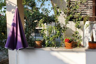 Appartamento può accogliere 4 ospiti. I letti sono disposti nelle camere da letto che sono 2, su 50m2. Gli ospiti hanno a disposizione il proprio terrazzo per godere nelle calde serate estive. Si può preparare il cibo utilizzando il barbecue comune.