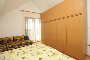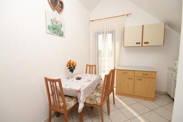 Appartamento può accogliere 5 ospiti. I letti sono disposti nelle camere da letto che sono 2, su 42m2. Gli ospiti hanno a disposizione il proprio terrazzo per godere nelle calde serate estive. Dall'appartamento si gode di una vista sul mare. Si può preparare il cibo utilizzando il barbecue comune.