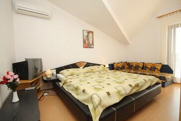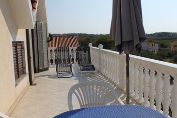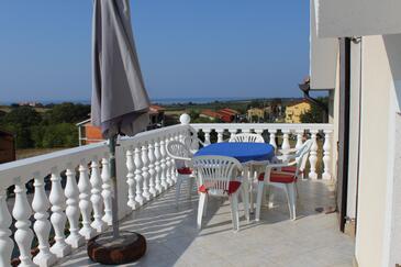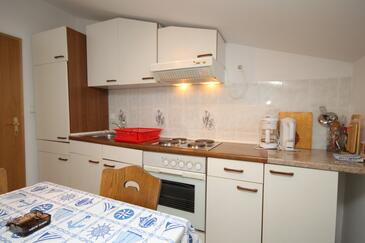Appartamento può accogliere 5 ospiti. I letti sono disposti nelle camere da letto che sono 2, su 42m2. Gli ospiti hanno a disposizione il proprio terrazzo per godere nelle calde serate estive. Dall'appartamento si gode di una vista sul mare. Si può preparare il cibo utilizzando il barbecue comune.