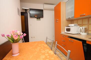 Appartamento può accogliere 4 ospiti. I letti sono disposti nelle camere da letto che sono 2, su 49m2. Gli ospiti hanno a disposizione il proprio terrazzo per godere nelle calde serate estive. Si può preparare il cibo utilizzando il barbecue comune.