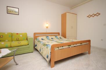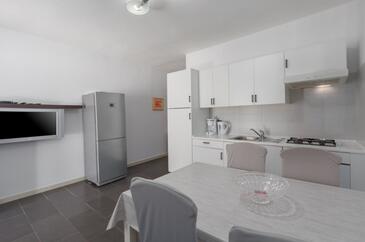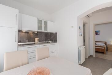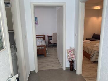 Appartamento può accogliere 4 ospiti. I letti sono disposti nelle camere da letto che sono 2, su 50m2. Gli ospiti hanno a disposizione il proprio terrazzo per godere nelle calde serate estive. Si può preparare il cibo utilizzando il barbecue comune.