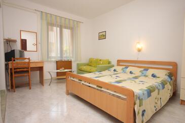 Appartamento può accogliere 4 ospiti. I letti sono disposti nelle camere da letto che sono 2, su 50m2. Gli ospiti hanno a disposizione il proprio terrazzo per godere nelle calde serate estive. Si può preparare il cibo utilizzando il barbecue comune.