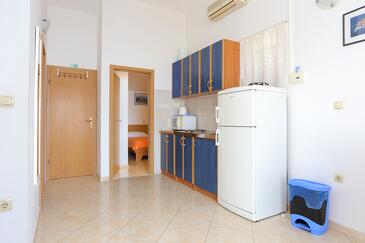 Appartamento può accogliere 4 ospiti. I letti sono disposti nelle camere da letto che sono 2, su 38m2. Gli ospiti hanno a disposizione il proprio terrazzo per godere nelle calde serate estive. Dall'appartamento si gode di una vista sul mare. Si può preparare il cibo utilizzando il barbecue comune.