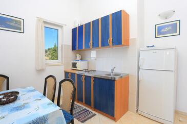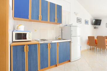 Appartamento può accogliere 4 ospiti. I letti sono disposti nelle camere da letto che sono 2, su 38m2. Gli ospiti hanno a disposizione il proprio terrazzo per godere nelle calde serate estive. Dall'appartamento si gode di una vista sul mare. Si può preparare il cibo utilizzando il barbecue comune.
