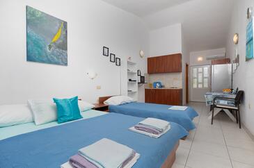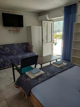 Monolocale può accogliere 3 ospiti. I letti sono disposti nelle camere da letto che sono 1, su 23m2. Gli ospiti hanno a disposizione il proprio balcone per godere delle calde serate estive. Dal monolocale si gode di una vista sul mare. Si può preparare il cibo utilizzando il barbecue comune.