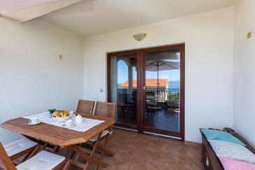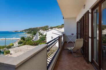 Appartamento può accogliere 6 ospiti. I letti sono disposti nelle camere da letto che sono 2, e nella camera di soggiorno, su 61m2. Gli ospiti hanno a disposizione il proprio terrazzo per godere nelle calde serate estive. Dall'appartamento si gode di una vista sul mare.