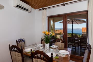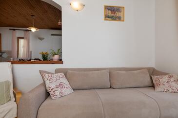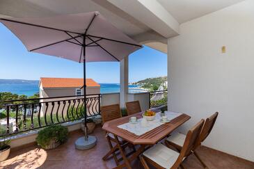 Appartamento può accogliere 6 ospiti. I letti sono disposti nelle camere da letto che sono 2, e nella camera di soggiorno, su 61m2. Gli ospiti hanno a disposizione il proprio terrazzo per godere nelle calde serate estive. Dall'appartamento si gode di una vista sul mare.
