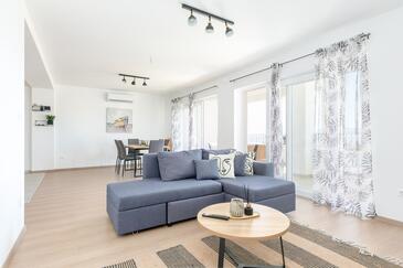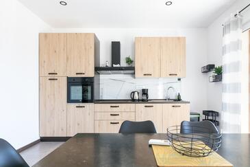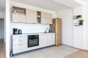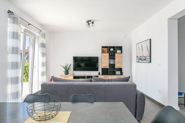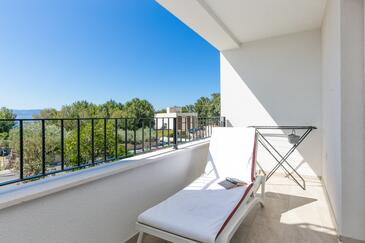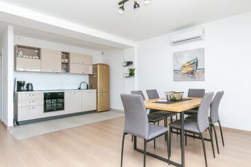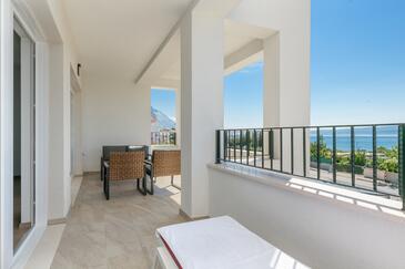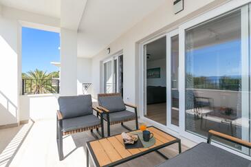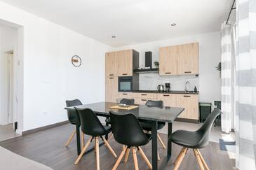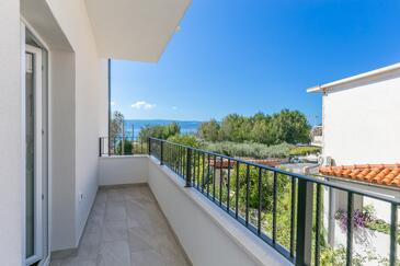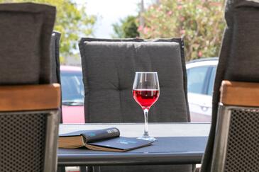 Appartamento può accogliere 4 ospiti. I letti sono disposti nelle camere da letto che sono 2, su 89m2. Gli ospiti hanno a disposizione il proprio terrazzo per godere nelle calde serate estive. Dall'appartamento si gode di una vista sul mare. Si può preparare il cibo utilizzando il barbecue comune.