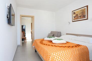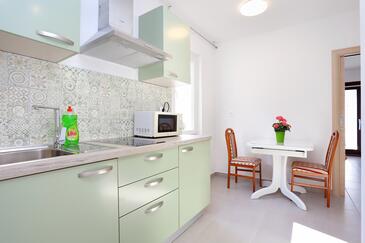 Appartamento può accogliere 4 ospiti. I letti sono disposti nelle camere da letto che sono 2, su 56m2. Gli ospiti hanno a disposizione il proprio terrazzo per godere nelle calde serate estive. Dall'appartamento si gode di una vista sul mare. Si può preparare il cibo utilizzando il barbecue comune.