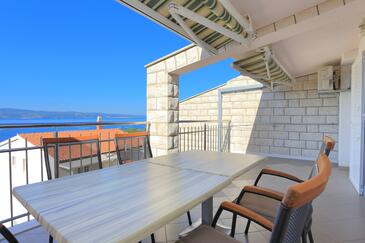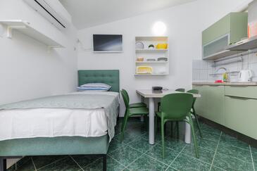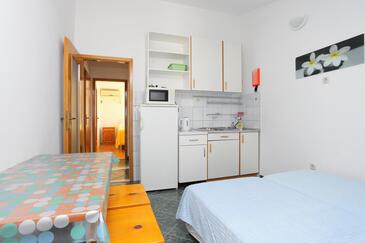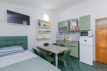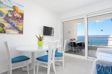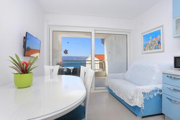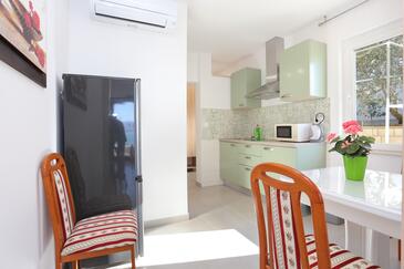 Appartamento può accogliere 4 ospiti. I letti sono disposti nelle camere da letto che sono 2, su 56m2. Gli ospiti hanno a disposizione il proprio terrazzo per godere nelle calde serate estive. Dall'appartamento si gode di una vista sul mare. Si può preparare il cibo utilizzando il barbecue comune.