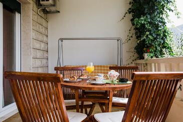Appartamento può accogliere 6 ospiti. I letti sono disposti nelle camere da letto che sono 2, e nella camera di soggiorno, su 69m2. Gli ospiti hanno a disposizione il proprio terrazzo per godere nelle calde serate estive. Si può preparare il cibo utilizzando il barbecue comune.