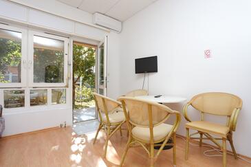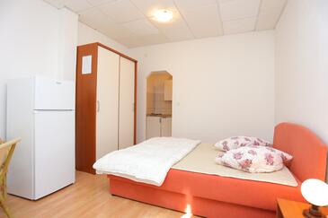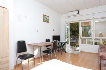 Monolocale può accogliere 3 ospiti. I letti sono disposti nelle camere da letto che sono 1, e nella camera di soggiorno, su 23m2. Gli ospiti hanno a disposizione il proprio terrazzo per godere nelle calde serate estive. Si può preparare il cibo utilizzando il barbecue comune.