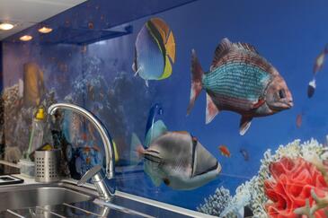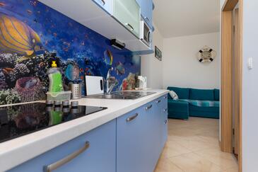 Appartamento può accogliere 4 ospiti. I letti sono disposti nelle camere da letto che sono 1, e nella camera di soggiorno, su 46m2. Gli ospiti hanno a disposizione il proprio balcone per godere delle calde serate estive. Dall'appartamento si gode di una vista sul mare. Si può preparare il cibo utilizzando il barbecue comune.
