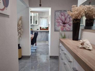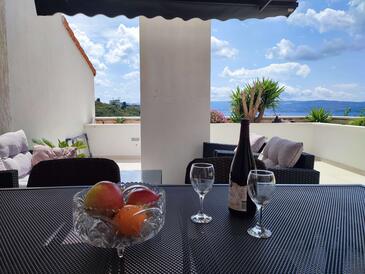 Appartamento può accogliere 6 ospiti. I letti sono disposti nelle camere da letto che sono 3, e nella camera di soggiorno, su 85m2. Gli ospiti hanno a disposizione il proprio terrazzo per godere nelle calde serate estive. Dall'appartamento si gode di una vista sul mare.