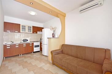Appartamento può accogliere 4 ospiti. I letti sono disposti nelle camere da letto che sono 1, e nella sala da pranzo, su 39m2. Gli ospiti hanno a disposizione il proprio terrazzo per godere nelle calde serate estive. Dall'appartamento si gode di una vista sul mare. Si può preparare il cibo utilizzando il barbecue comune. Nell'unità di alloggio si possono portare gli animali domestici con un pagamento supplementare.