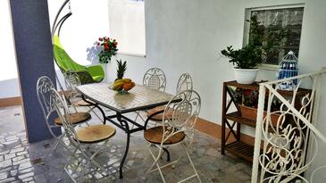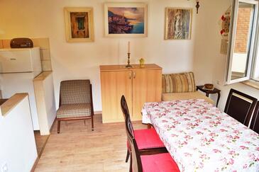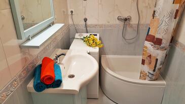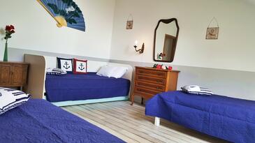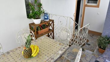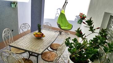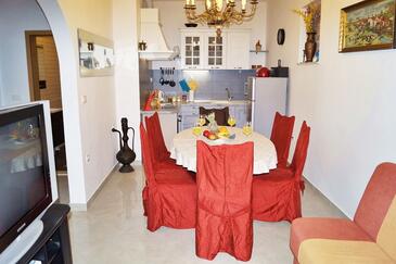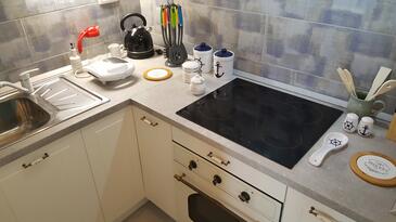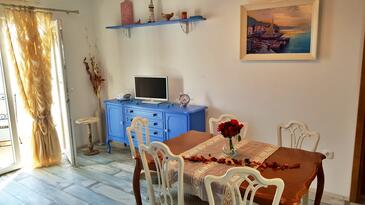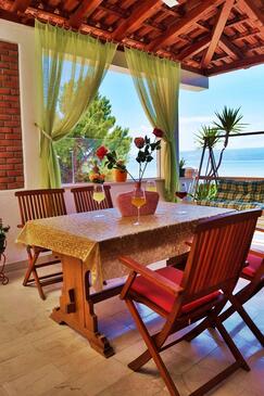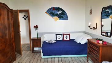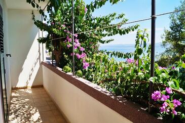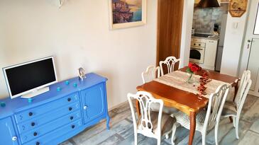 Appartamento può accogliere 5 ospiti. I letti sono disposti nelle camere da letto che sono 2, su 52m2. Gli ospiti hanno a disposizione il proprio terrazzo per godere nelle calde serate estive. Dall'appartamento si gode di una vista sul mare.