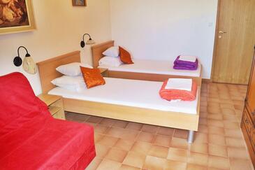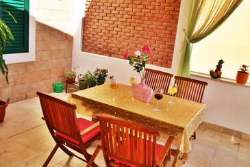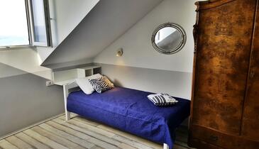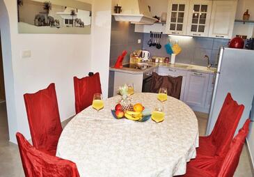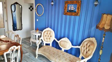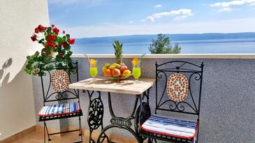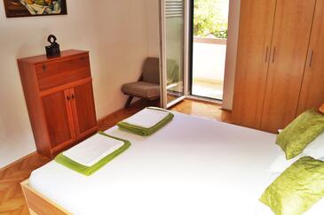 Appartamento può accogliere 5 ospiti. I letti sono disposti nelle camere da letto che sono 2, su 52m2. Gli ospiti hanno a disposizione il proprio terrazzo per godere nelle calde serate estive. Dall'appartamento si gode di una vista sul mare.