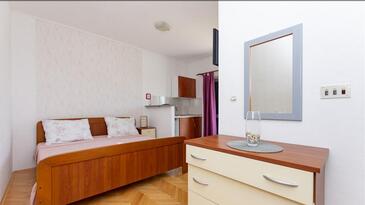 Monolocale può accogliere 4 ospiti. I letti sono disposti nelle camere da letto che sono 1, su 26m2. Gli ospiti hanno a disposizione il proprio balcone per godere delle calde serate estive. Dal monolocale si gode di una vista sul mare. Si può preparare il cibo utilizzando il barbecue comune.