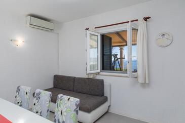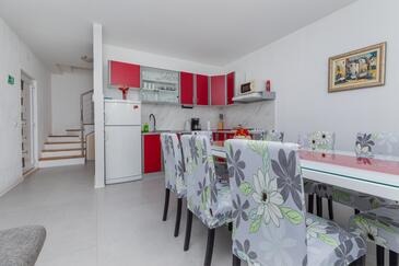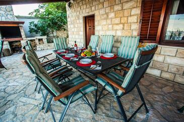 Casa può accogliere 8 ospiti. I letti sono disposti nelle camere da letto che sono 4, su 108m2. Gli ospiti hanno a disposizione il proprio terrazzo per godere nelle calde serate estive. Dalla casa si gode di una vista sul mare. Per il piacere totale e il relax c'è il barbecue privato solo per gli ospiti di quest'alloggio. Durante il soggiorno gli ospiti si possono rilassare nella piscina privata. Le stanze dell'unità d'alloggio non sono connesse in un insieme.