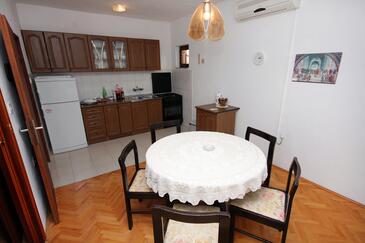 Appartamento può accogliere 6 ospiti. I letti sono disposti nelle camere da letto che sono 2, su 60m2. Gli ospiti hanno a disposizione il proprio terrazzo per godere nelle calde serate estive. Dall'appartamento si gode di una vista sul mare. Si può preparare il cibo utilizzando il barbecue comune.