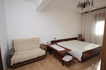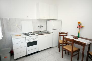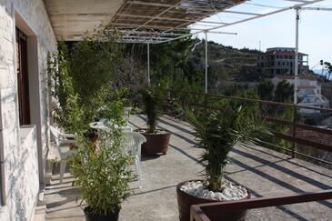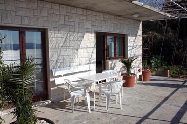Appartamento può accogliere 6 ospiti. I letti sono disposti nelle camere da letto che sono 2, su 60m2. Gli ospiti hanno a disposizione il proprio terrazzo per godere nelle calde serate estive. Dall'appartamento si gode di una vista sul mare. Si può preparare il cibo utilizzando il barbecue comune.