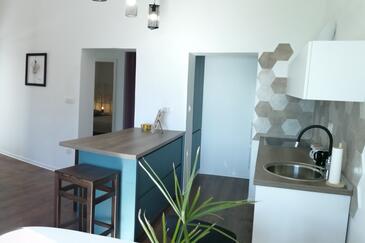 Appartamento può accogliere 8 ospiti. I letti sono disposti nelle camere da letto che sono 3, e nella camera di soggiorno, su 88m2. Gli ospiti hanno a disposizione il proprio balcone per godere delle calde serate estive. Dall'appartamento si gode di una vista sul mare. Si può preparare il cibo utilizzando il barbecue comune. Nell'unità di alloggio si possono portare gli animali domestici con un pagamento supplementare.