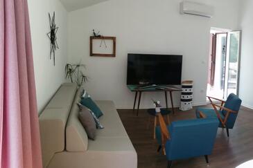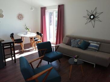 Appartamento può accogliere 8 ospiti. I letti sono disposti nelle camere da letto che sono 3, e nella camera di soggiorno, su 88m2. Gli ospiti hanno a disposizione il proprio balcone per godere delle calde serate estive. Dall'appartamento si gode di una vista sul mare. Si può preparare il cibo utilizzando il barbecue comune. Nell'unità di alloggio si possono portare gli animali domestici con un pagamento supplementare.