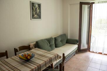 Appartamento può accogliere 5 ospiti. I letti sono disposti nelle camere da letto che sono 1, e nella sala da pranzo, su 34m2. Gli ospiti hanno a disposizione il proprio terrazzo per godere nelle calde serate estive. Dall'appartamento si gode di una vista sul mare. Si può preparare il cibo utilizzando il barbecue comune. Nell'unità di alloggio si possono portare gli animali domestici con un pagamento supplementare.