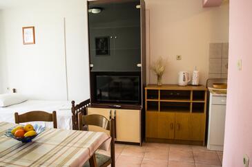 Appartamento può accogliere 5 ospiti. I letti sono disposti nelle camere da letto che sono 1, e nella sala da pranzo, su 34m2. Gli ospiti hanno a disposizione il proprio terrazzo per godere nelle calde serate estive. Dall'appartamento si gode di una vista sul mare. Si può preparare il cibo utilizzando il barbecue comune. Nell'unità di alloggio si possono portare gli animali domestici con un pagamento supplementare.